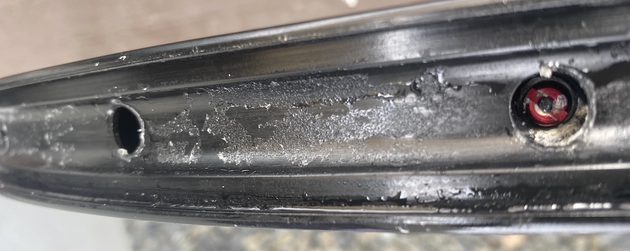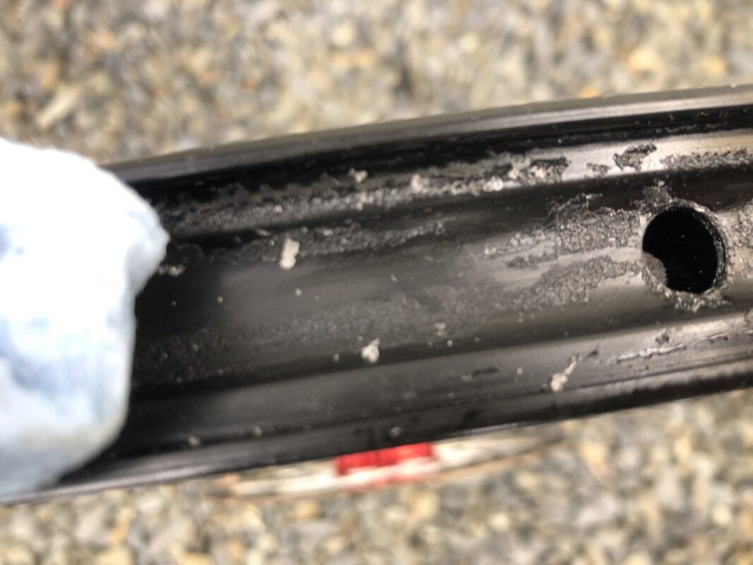 この類の糊はなかなかはがれませんよね?リムサイドのフックには、シーラントがこびりついています。