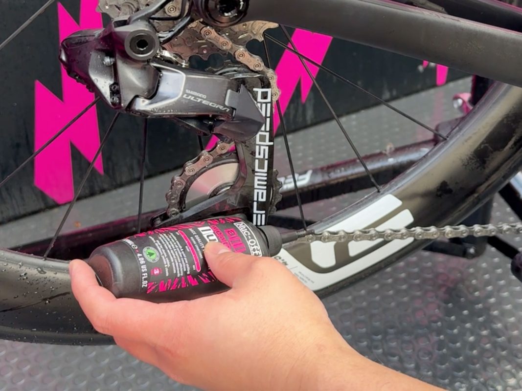 2.MO-94をチェーン(必要に応じてカセット・ボルト周り)へ軽くスプレー