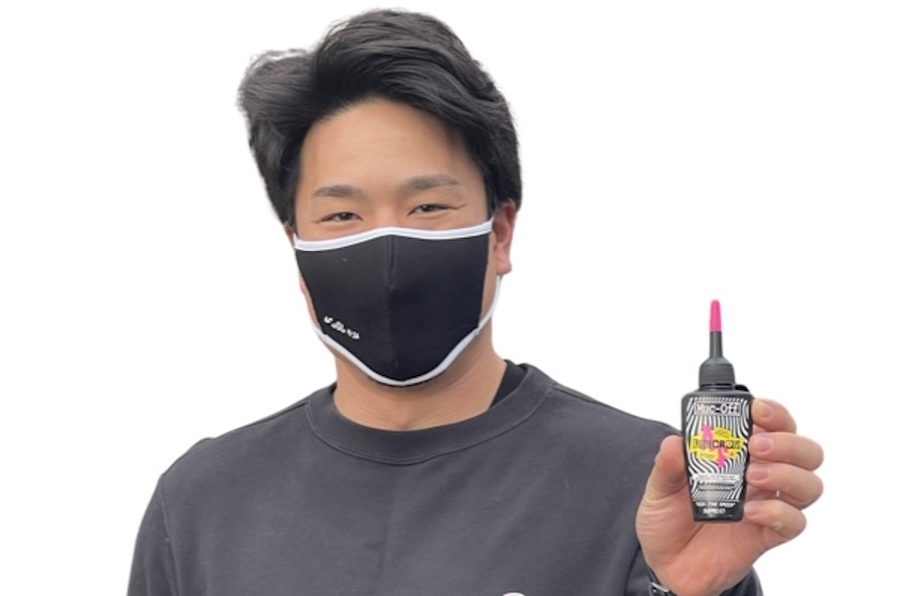 (古性選手の本番車とMuc-Off LUDICROUS AF LUBE)
