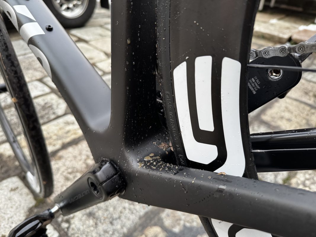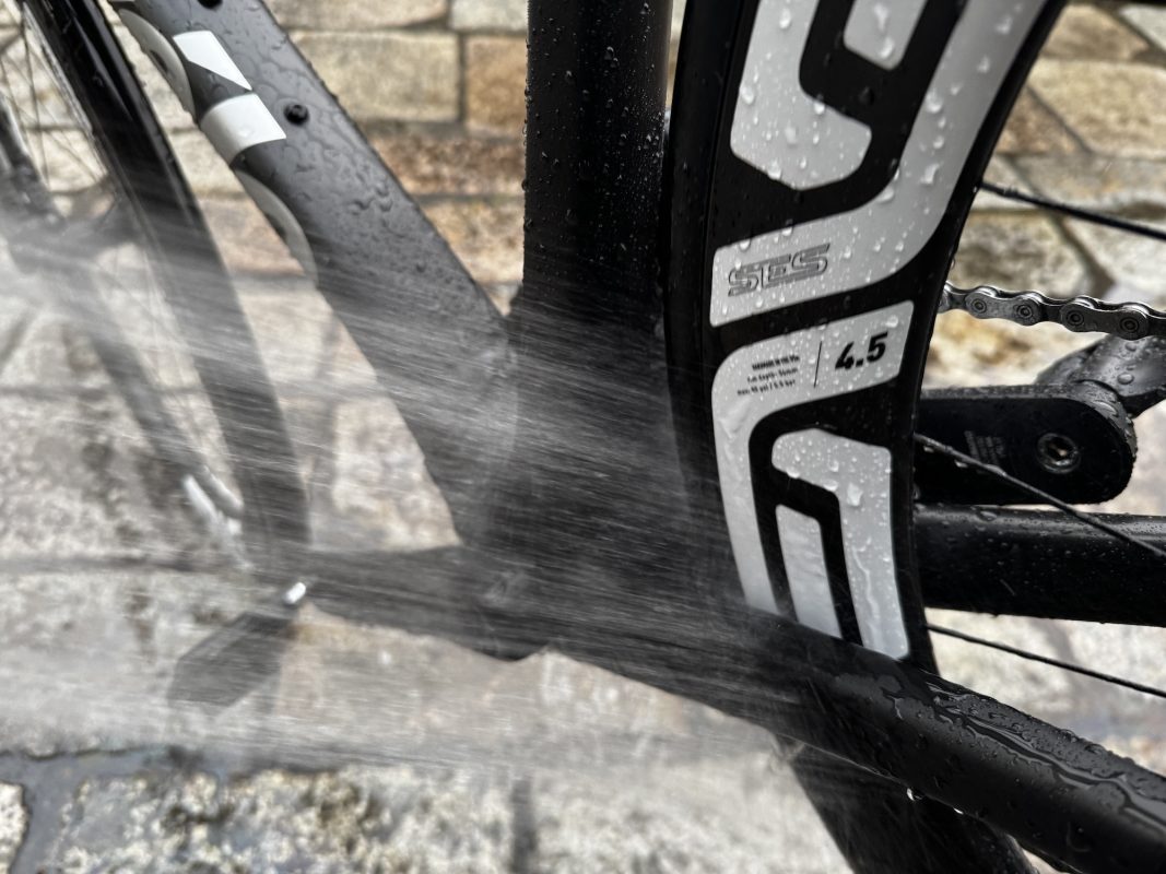 雨上がりや雪解け後のライドでは、フレームに水しぶきや泥が付着しやすくなります。
