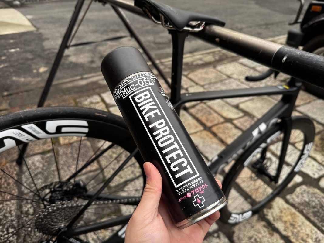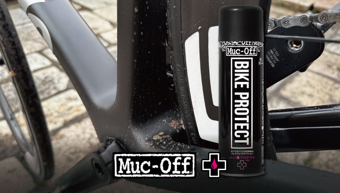 そこで提案したいのが、**ライド前に行う「予防コーティング」**です。Muc-Off BIKE PROTECT SPRAYを事前にスプレーしておくことで、ライド後の汚れ落としが容易になり、メンテナンス時間の短縮につながります。