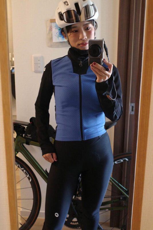 バグかなさんは、比較的温暖な地域に住み、ヒルクライム中心に走るため、冬でも比較的アウターは軽めのものを着るのが特徴。
