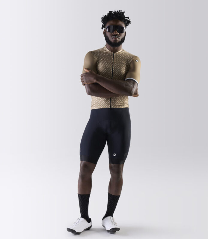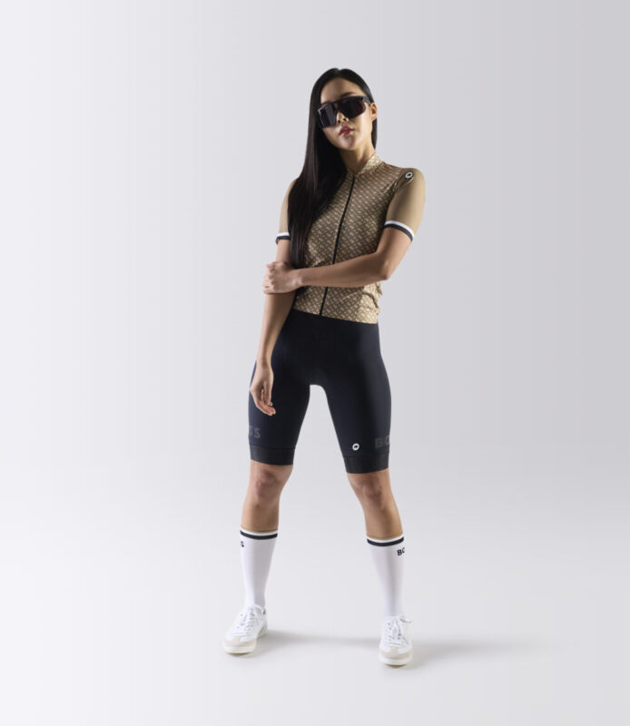 MILLE GT BIB SHORTS C2がベースに裾にはBOSSのロゴが入り、ストラップがゴールドカラーに!
