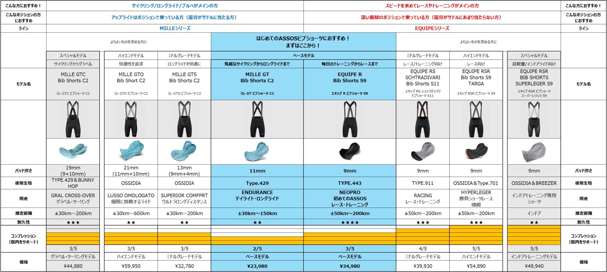 と疑問を感じられた方に向けてASSOSショーツの特徴と選び方をご説明します。