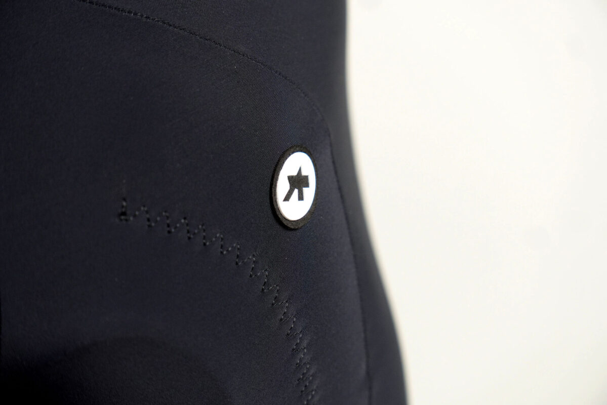 アソスだけのX型ビブストラップの下部分は伸縮性の少ない生地を使用。