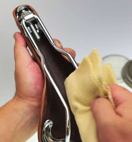 1. サドル表面に少量のプルーファイドを薄く磨くように塗りこむ。