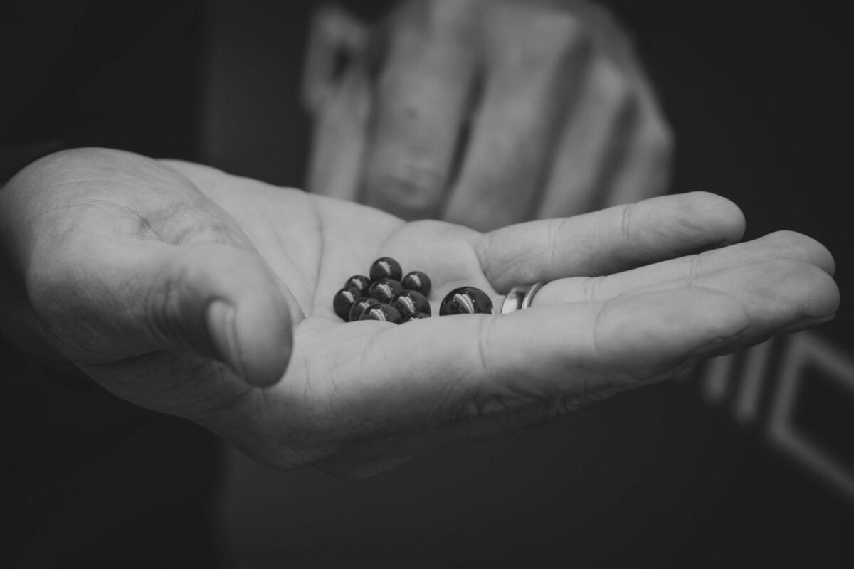 下の写真は、直径6.35mmのベアリングボールを示したもの。左がCeramicSpeed製、右が標準的な鉄製のボールです。両者に同じだけ負荷をかけましたが、その差は歴然。鉄製のボールは割れてしまいました。しかし、CeramicSpeedのボールは一切欠けることなく、全く普通に使用できます。
