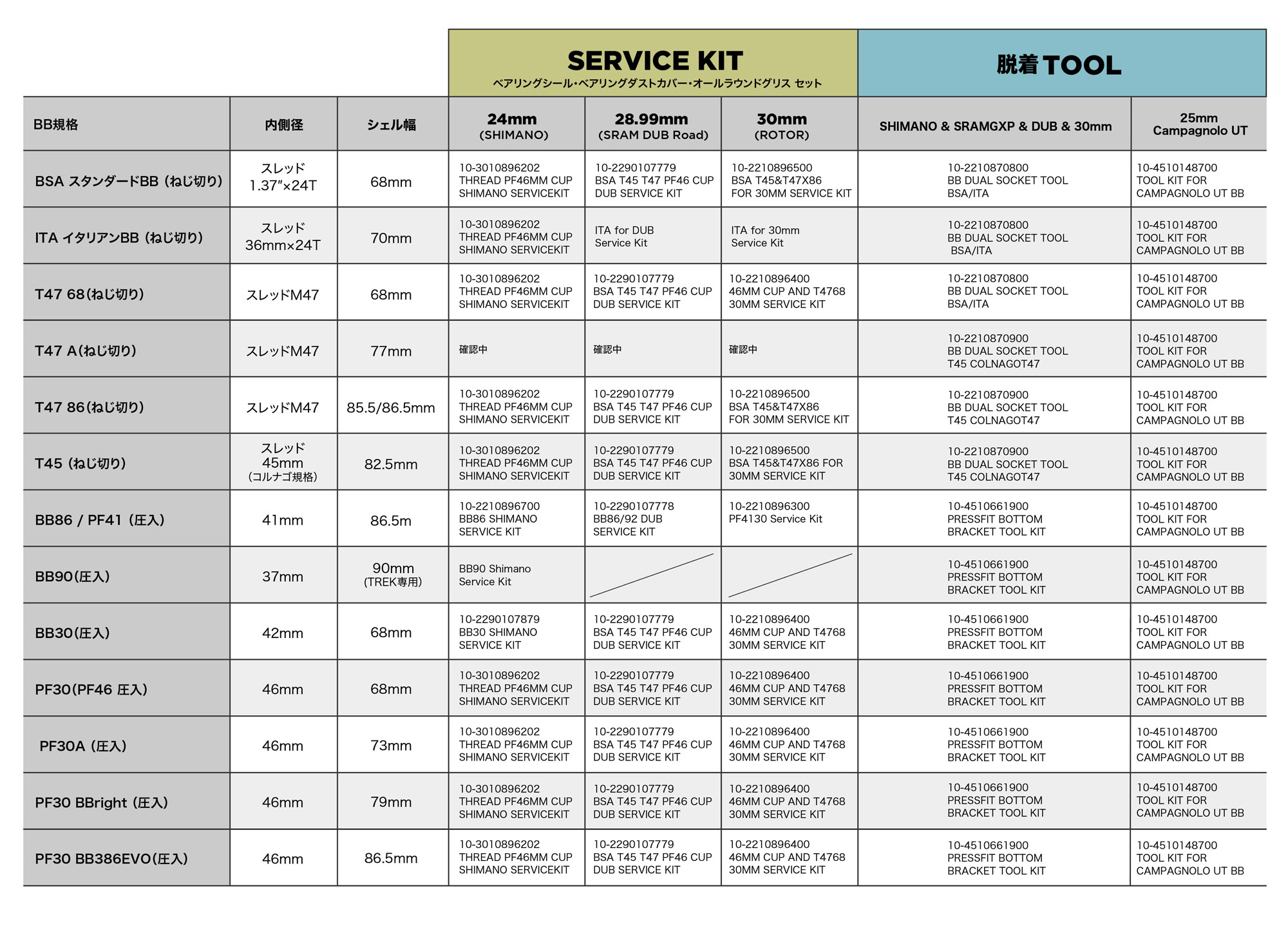 ボトムブラケットマトリックスをダウンロードすることでお使いの自転車に適合するボトムブラケットを見つけることができます。