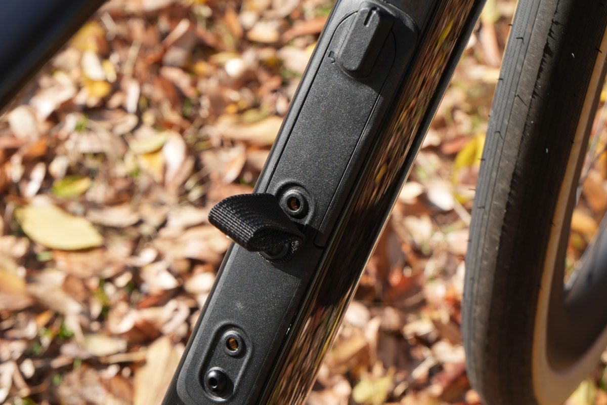 予備チューブや携帯ツールをフレーム内部に収納可能。サドルバッグなどで重心を崩すことなく、バイクの美しい外観も損ないません。