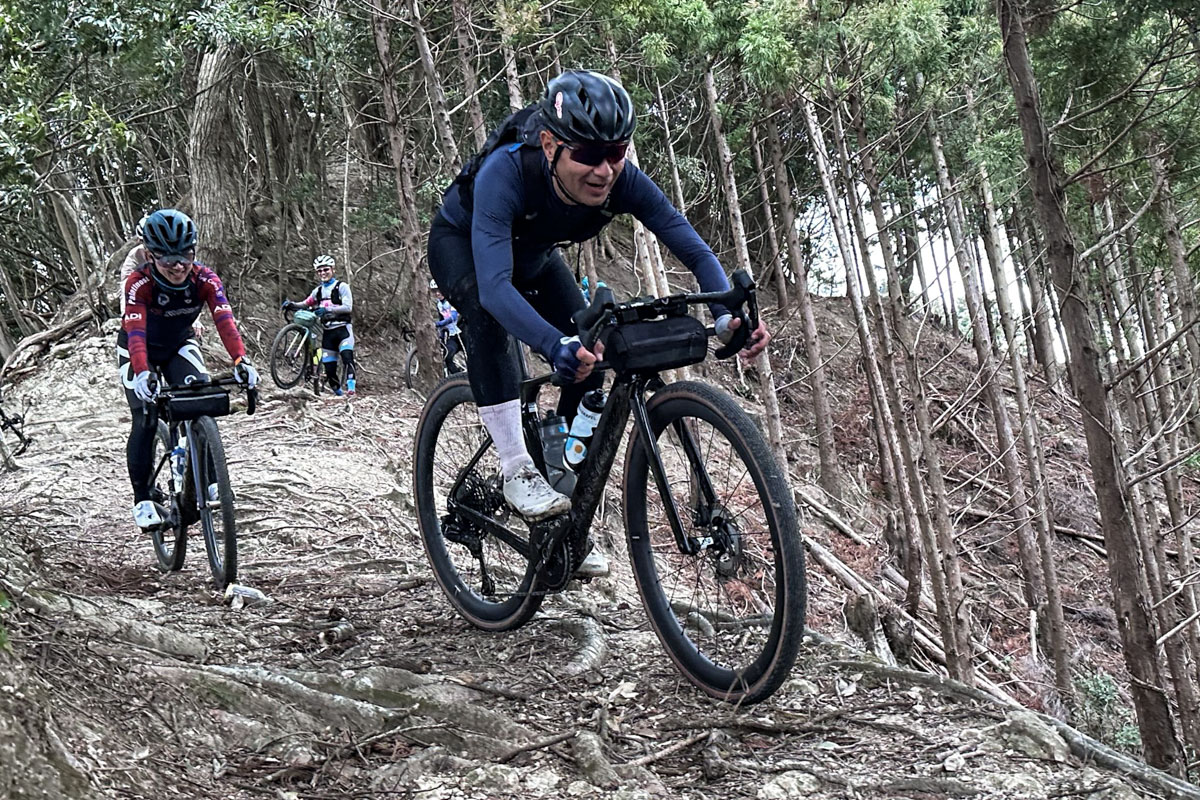実のところ、Aspero5のフレーム形状がエアロを突き詰めたものだけに、グラベルには向かない「クセ」が出るのではないかと思っていた。しかしそれはまったくの杞憂だった。振動吸収性は十分にあるし、操作感、操舵感も自然で扱いやすく、変なクセは一切感じられない。同時にボリュームの大きなチューブは「過剛性なのでは?」という心配もあったが、それも感じない乗りやすさ。