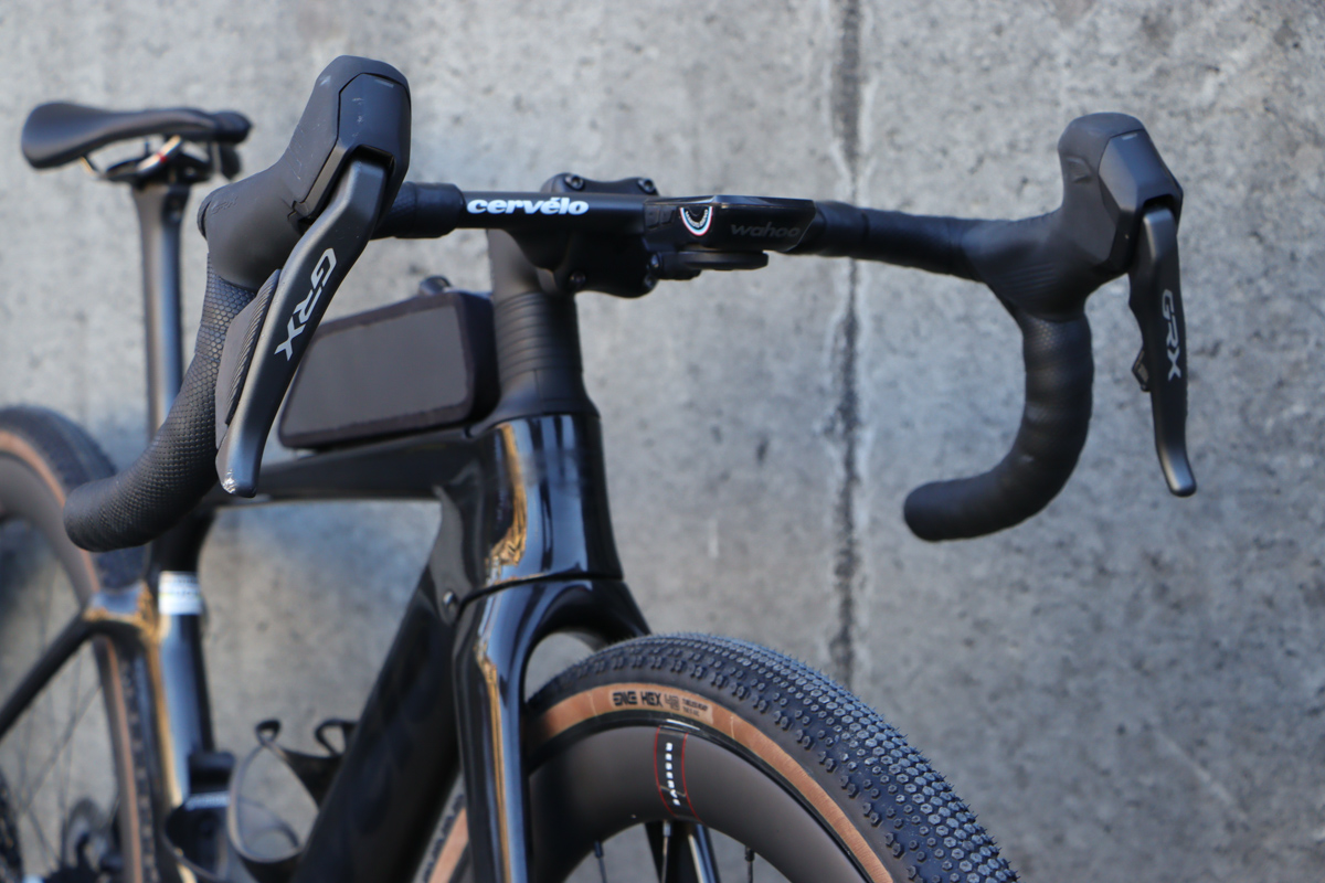 「グラベルバイクは幅広のバーを使ってオフロードでの安定感を高める」という考え方もあるが、こと速く走るにはやはり空力的に不利になる。かといってハンドルを狭くしただけではハンドリングが難しくなるので、そこをハンドルのフレア形状とフレームのジオメトリーでカバーするように煮詰めるのがノウハウだろう。