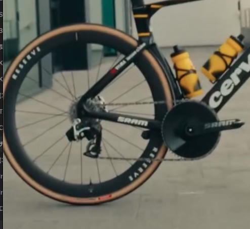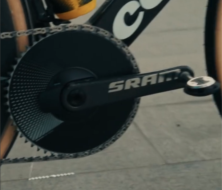 ドライブトレインはSRAM Red AXSの1xで、フロントチェーンリングは56T。チェーンはチーム全体でワックス処理されていると報じられています。