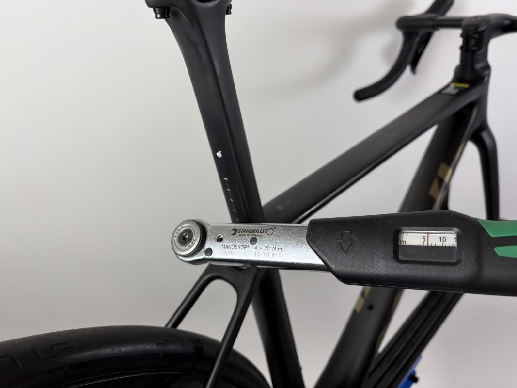 トルクレンチを使用して規定トルクで一度固定を行います。