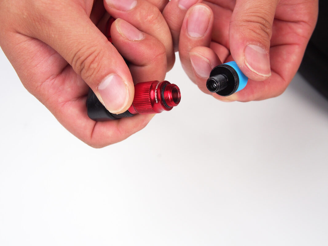 ポンプヘッドの先端に捩じ込むだけで、Clikバルブに対応します。