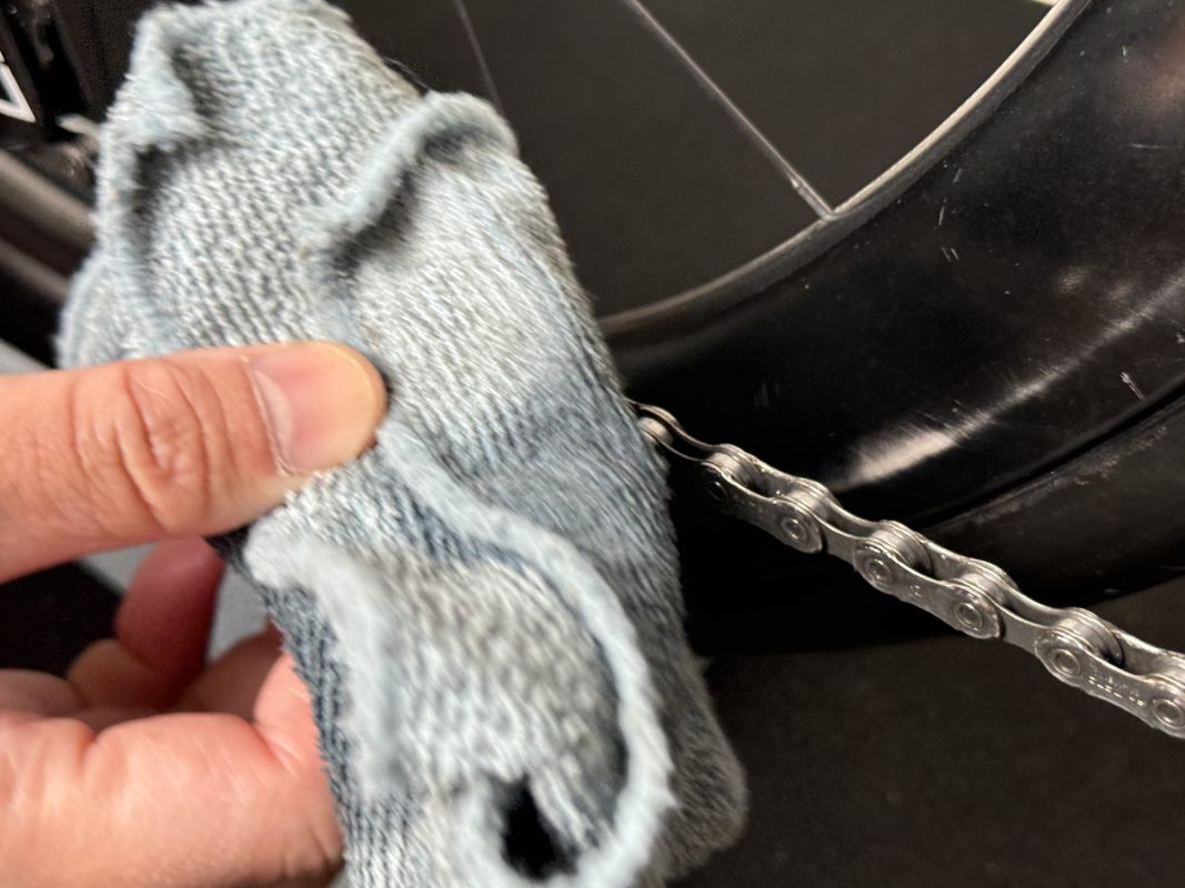 ペダルを回しながらゆっくりと変速させ、ワックスを内部の隅々まで浸透させます。