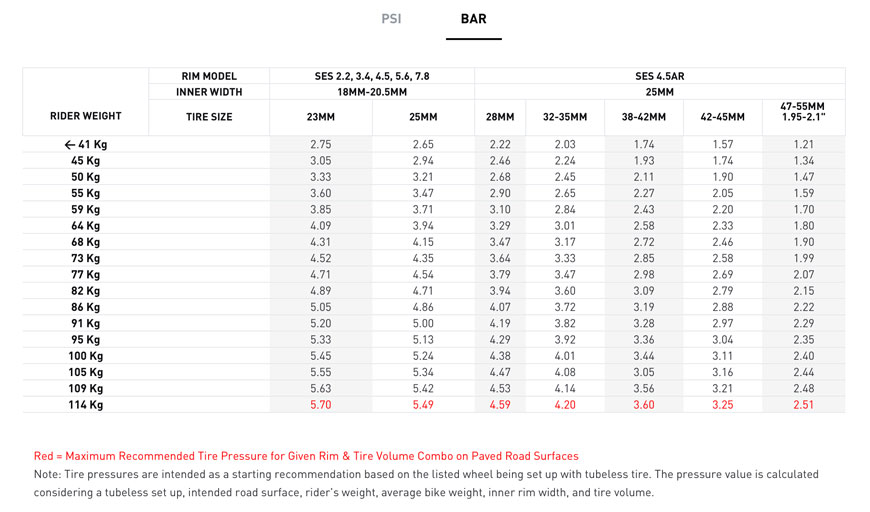 - ENVE指定 タイヤエア圧を必ずお守りください
