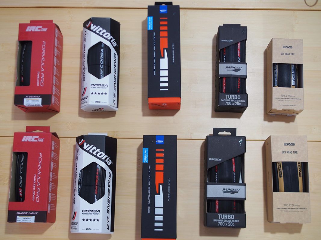 そこでENVE フックレスリムを使用して、実際に対応するタイヤを集めて着脱テストを行いました。