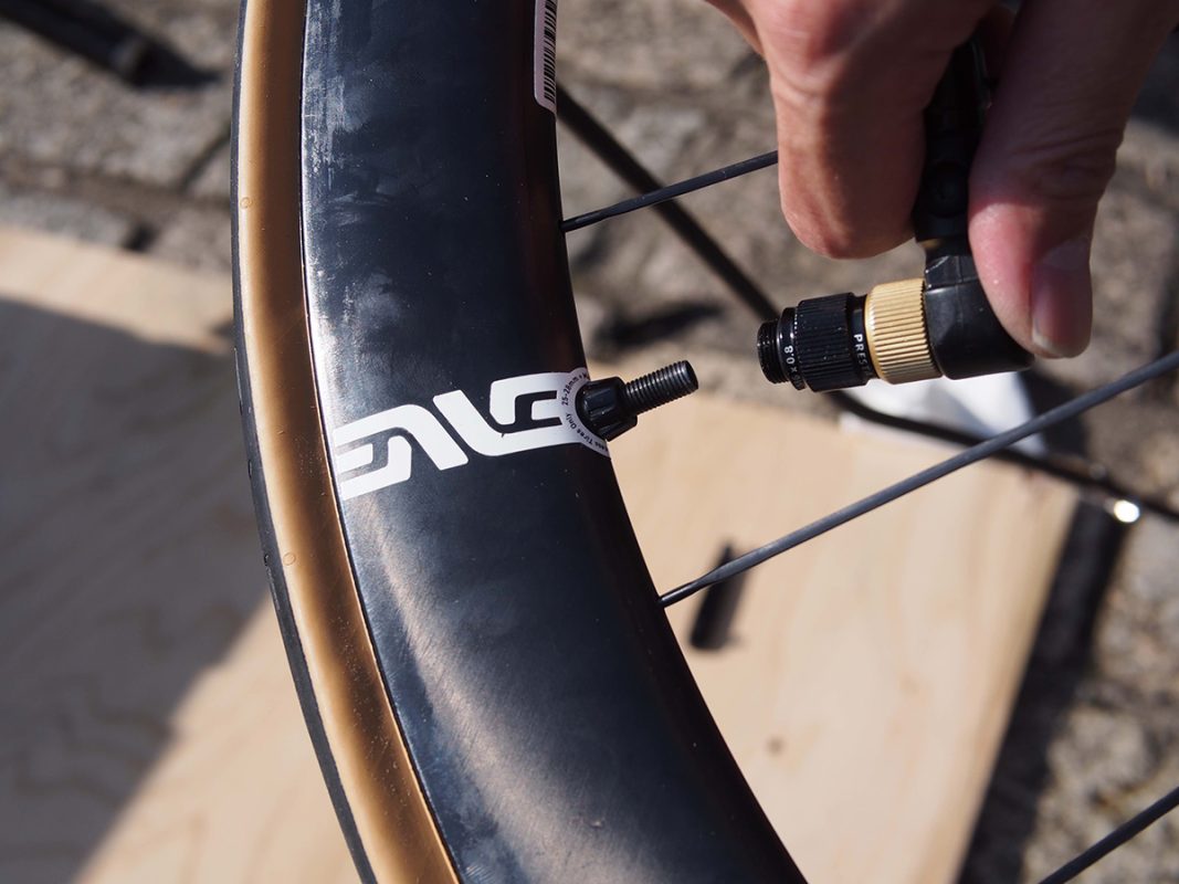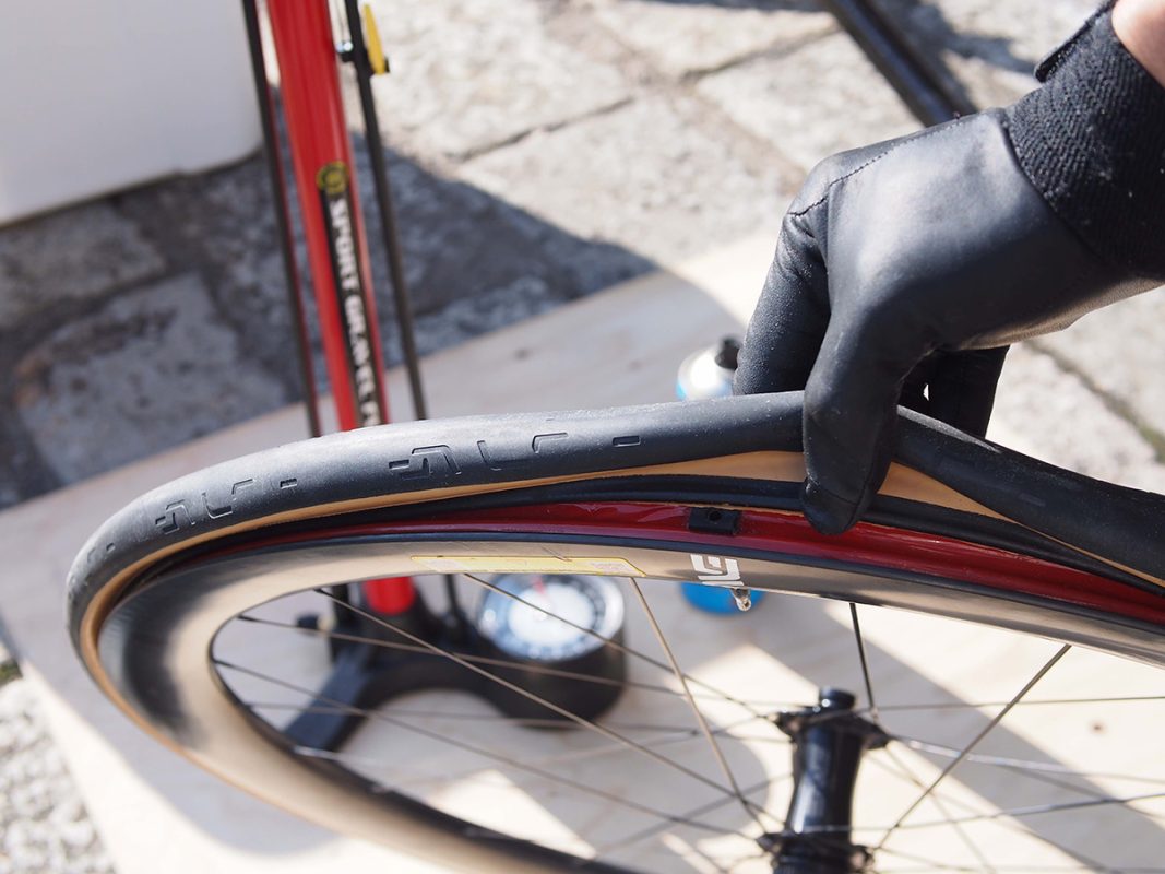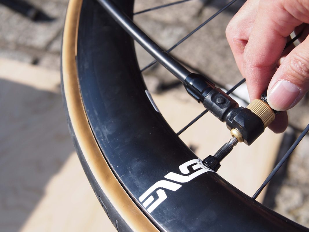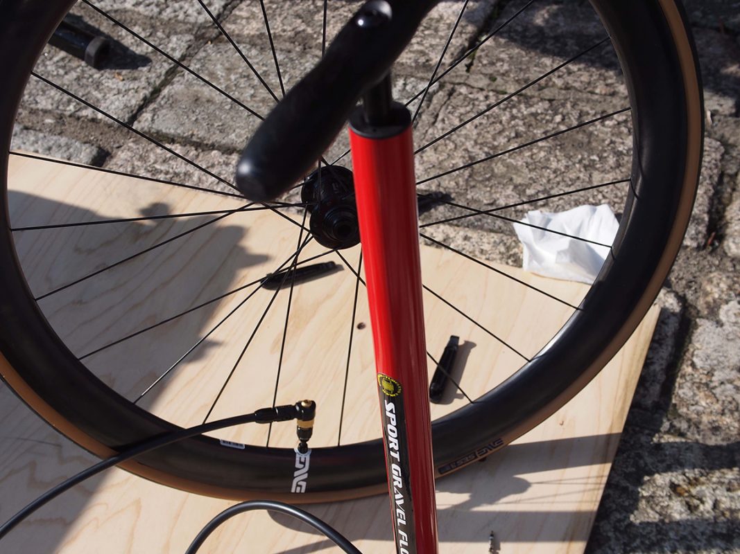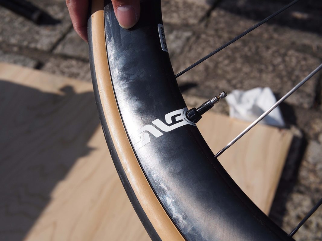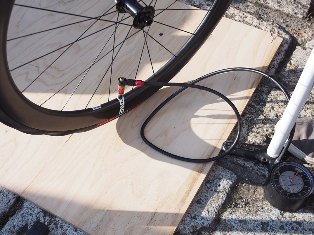 ENVE SES Tire 丁寧にビードを整えれば簡単にビードアップできる。はじめのポンピングが重要。