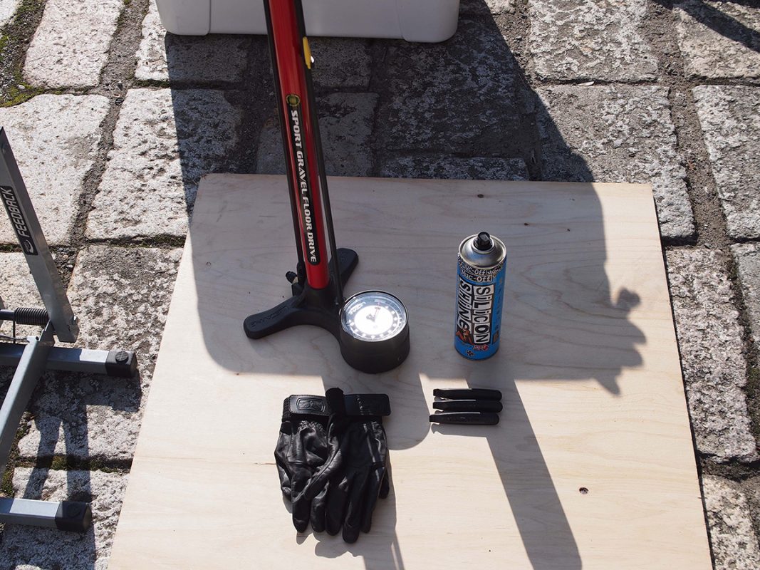 - ビードアップはフロアポンプを使用(今回はLEZYNEクラシックフロアドライブとグラベルフロアドライブ)