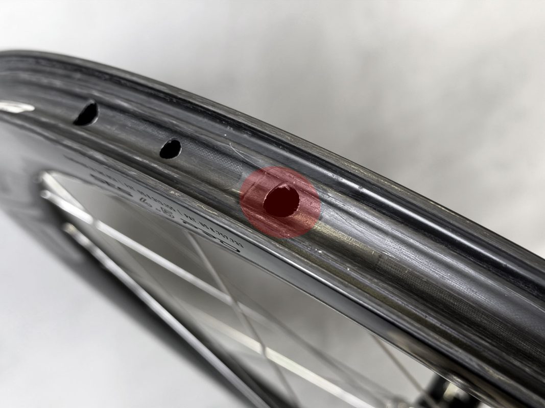 従来のSESシリーズでは2cm×4cmほどの長方形だった抜き穴を、直径2cmの円状に変更。さらに、その蓋をスポークホールと併用する設計にしています。