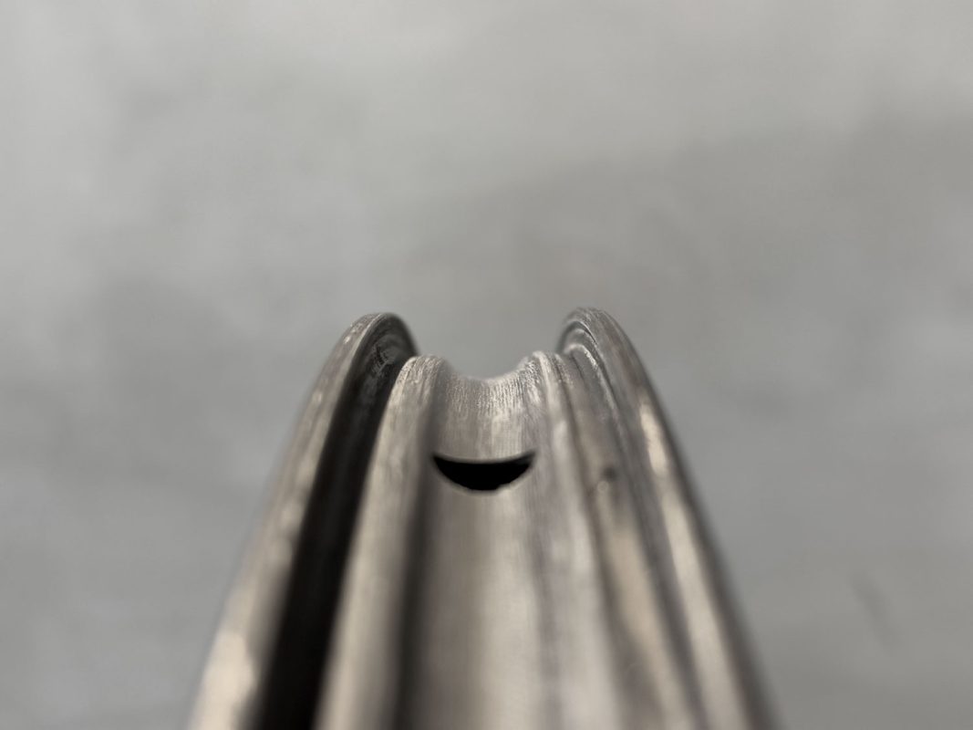 フックレスリムの軽量化を突き詰めるため、成形後に精密な切削加工を施しています。リムの内幅は23.5mmですが、実際にタイヤビードが接する部分は25mmとなっており、タイヤの装着感と安定性を高めています。