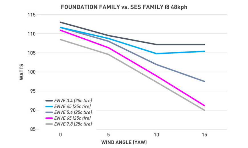 7.8 disc(108w) < enve65(111W) < 5.6disc≒ENVE45(112W) < 3.4DISC(113W)
