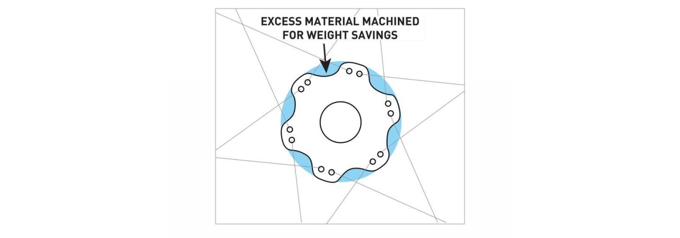 最初に目に飛び込んでくる美しい切削加工は、フランジのジオメトリーと軽量化とを見事なバランスで実現した際の副産物に過ぎません。