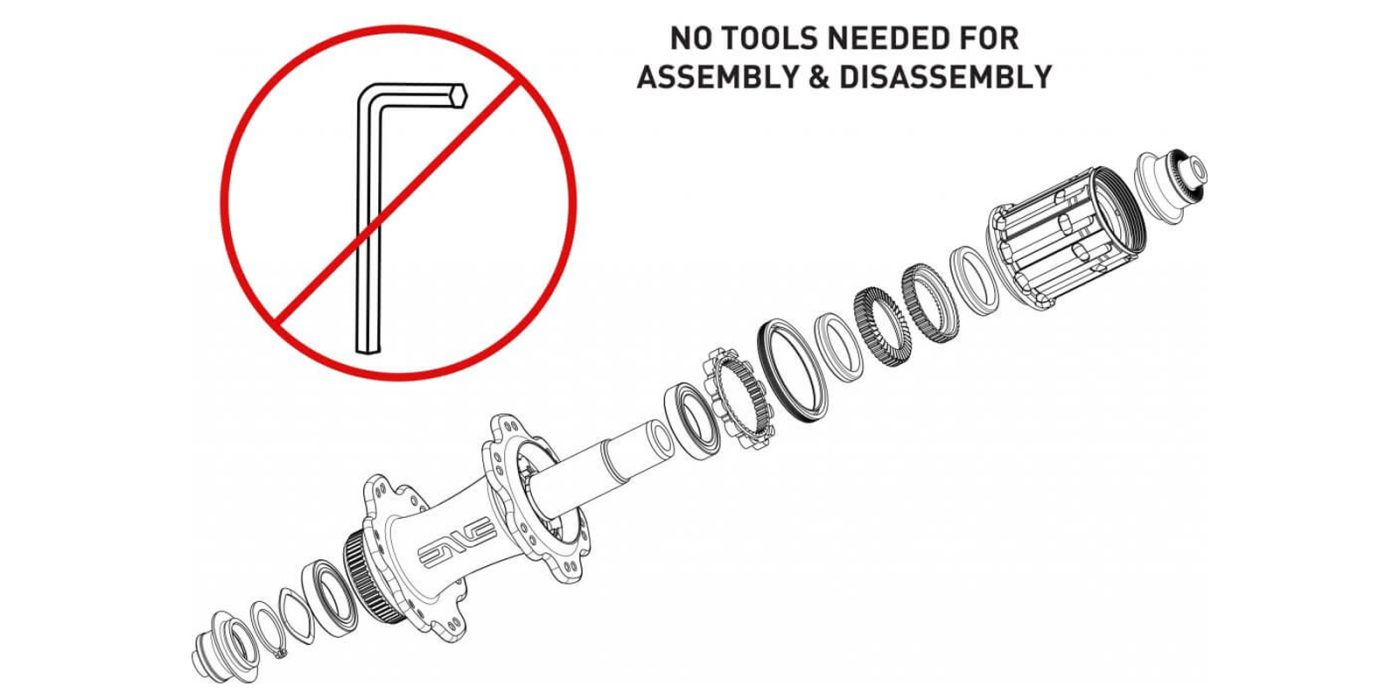 最高の製品とは、自分たちで使ってみてイライラしないものである、とENVEでは冗談として知られています。ハブほどこれが当てはまる部品は、他にないでしょう。よくある悩みの種は、パンク修理中やホイールを外した際に、フリーハブボディーがカセットごと脱落してしまうというもの。これが生じると、スプリング、ラチェット、爪も落ちてしまいます。これらの部品が失くなれば、思った以上にイライラが募るはず。