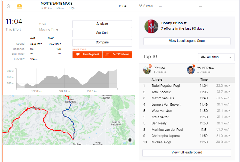 Strava では、レース中に獲得した 100 以上の KOM を見ることができます。