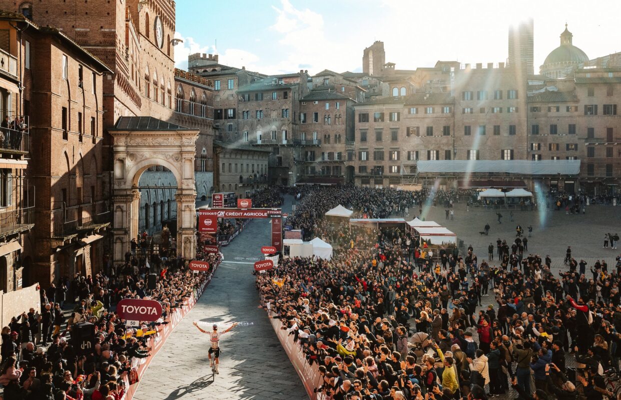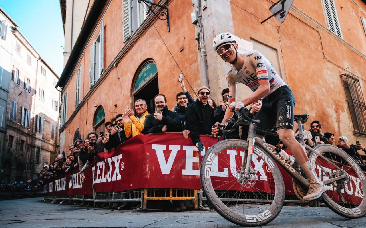 2年前にも勝利したUAEのポガチャルだが、今年は81kmでアタックを仕掛けそこから2時間以上ソロで走り、シエナまでの未舗装路区間を平均340w、39km/h近くで逃げ切りストラーデ・ビアンケ2024を制しました。