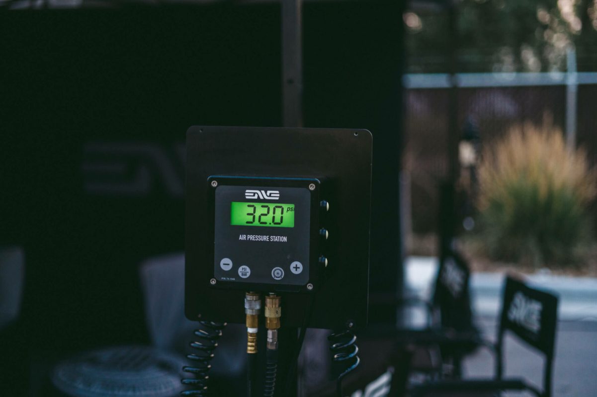 ENVEのエアステーションは、レース前に最も人気のある場所で、ライダーたちはスタート直前に好みのエア圧に調整していました。