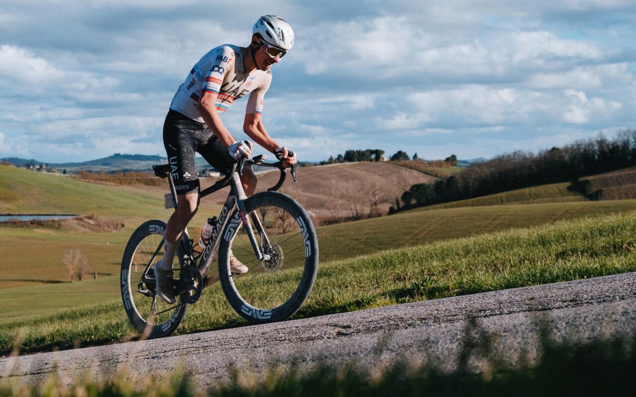 様々なコースがあるプロのレースで複数のリムハイトからホイールを選べるにも関わらず90%の確率で1種類のホイールを使うというのは型破りに思えますが、UAE チーム エミレーツはSESホイールのデータを信頼し、実際の走行テストの前に、独自の転がり抵抗と風洞データで検証しました。