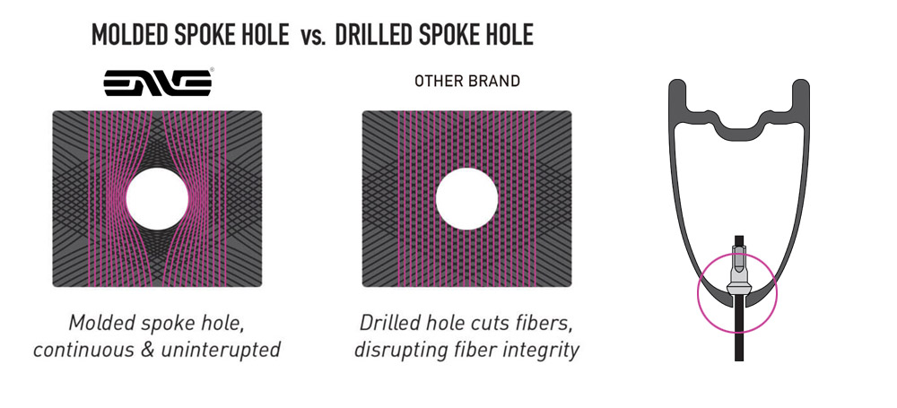 ENVEのリムは最初から、スポークホールをモールド成形で作製します。