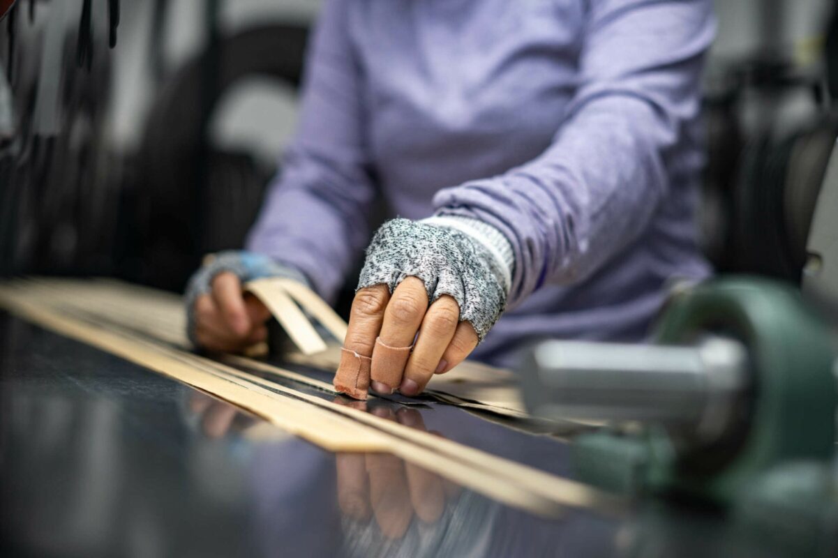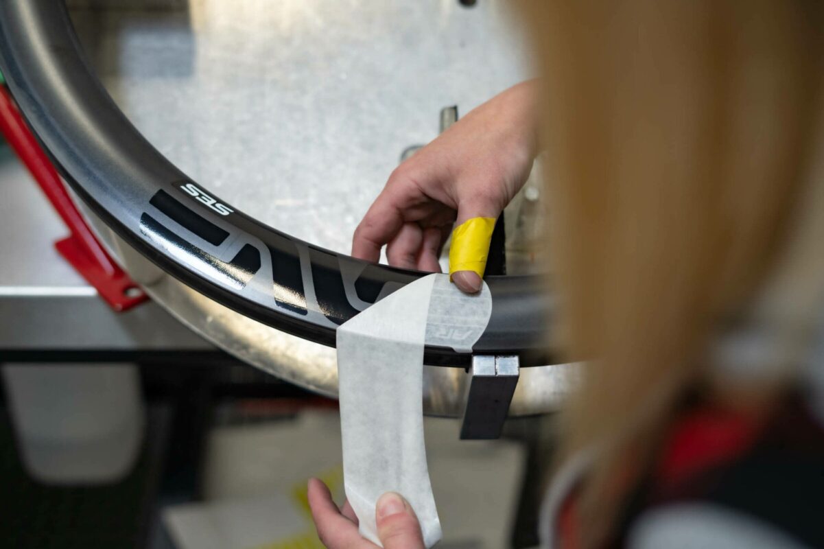 ENVEのホイールはカーボンシートの切り出し、レイアップ、焼き上げ、組み上げ、デカール貼り、検品の工程を複数のスタッフにより手作業で行われています。