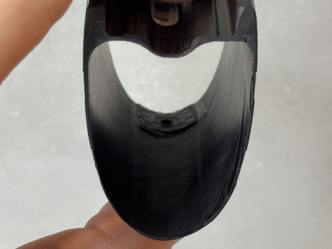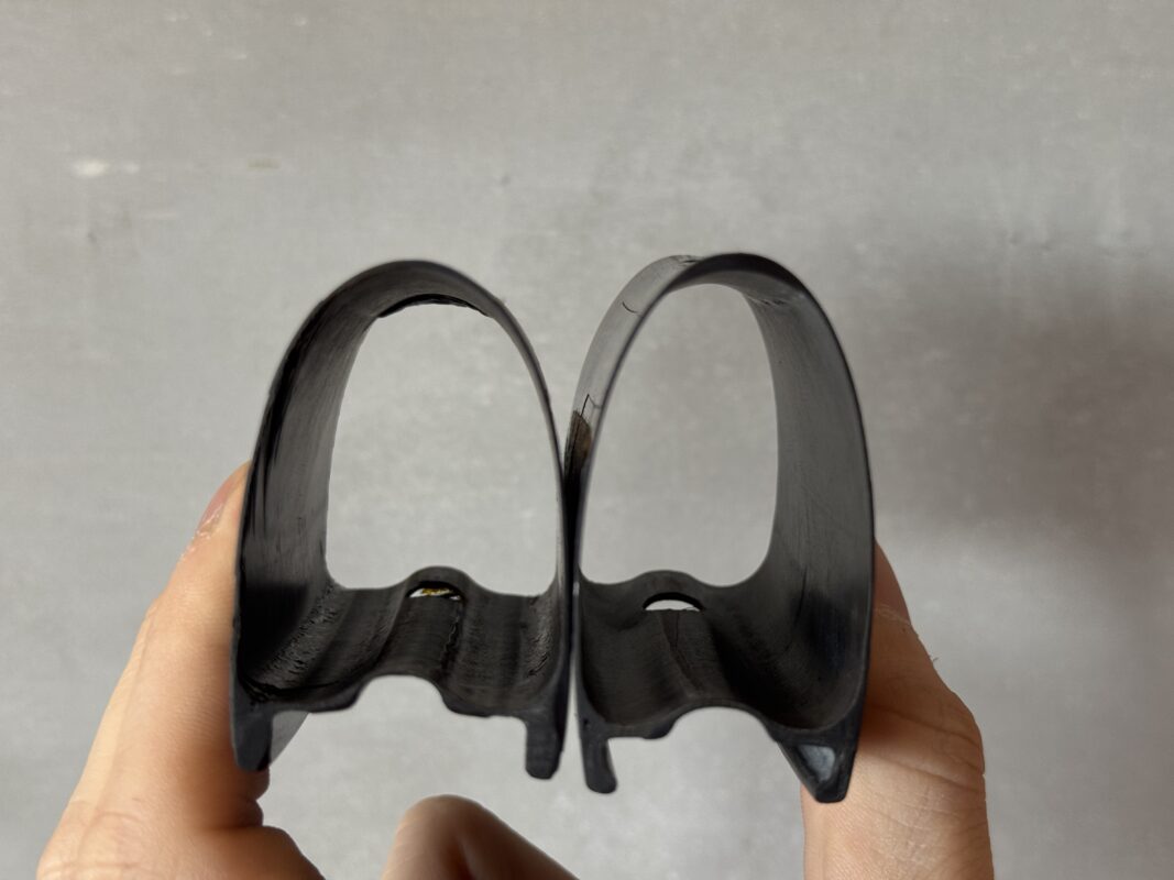 通常、カーボンパーツを作成する場合、ブラッダーという風船のような物を入れ膨らまし、金型に押し付けます。そして焼く段階で溶かしてしまいますが、ENVEでは溶かすのではなくそのまま取り出す技術を持っているため、内部に余計な物を残さずにリムを作成することができます。
