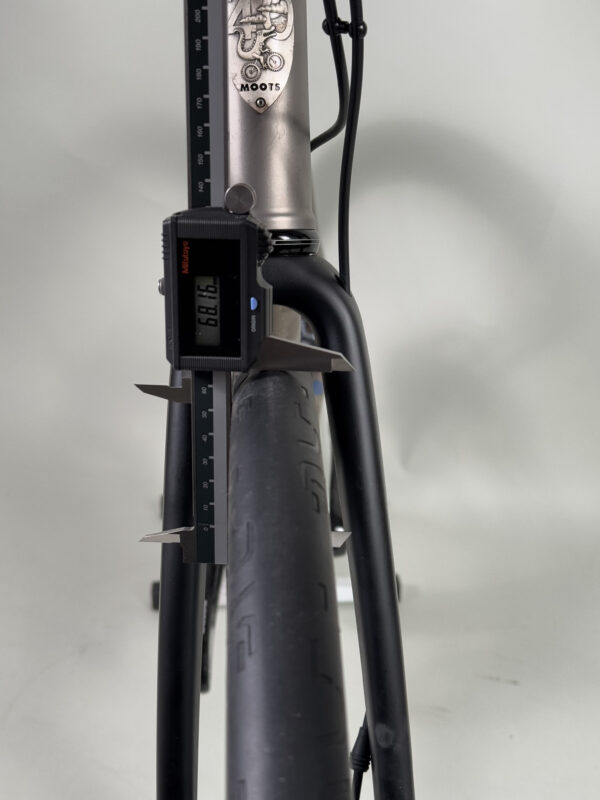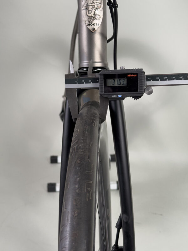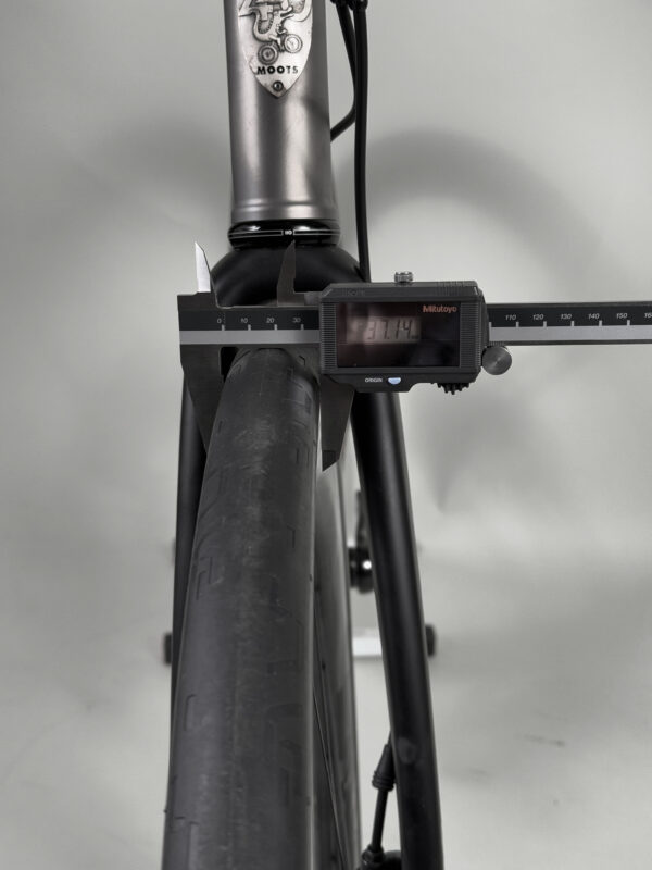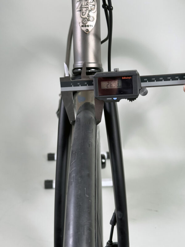またフレームのタイヤクリアランスを超えている場合フロントが収まってもフロントディレイラーに干渉しリアが収まらない可能性がございます。
