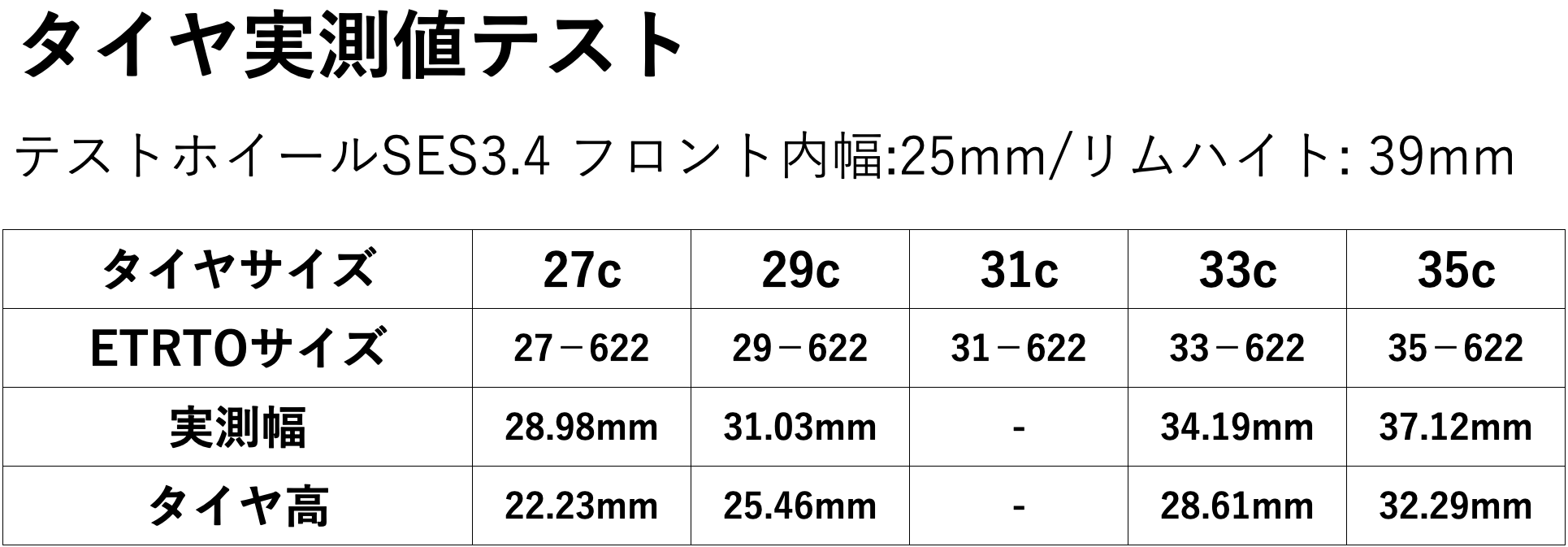 今回取り付けたタイヤはENVE SES TIREの「27C/29C/33C/35C」の4サイズでテストしました。