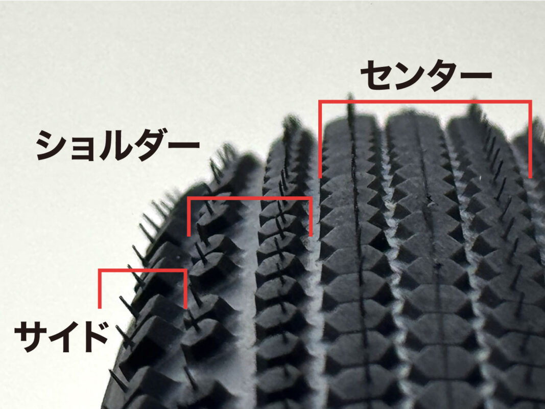 単なるデザイン上の特徴ではなく、グラベルに必要な走破性・快適性・スピードの三要素をすべて両立するために設計された、極めて機能的なパターンです。