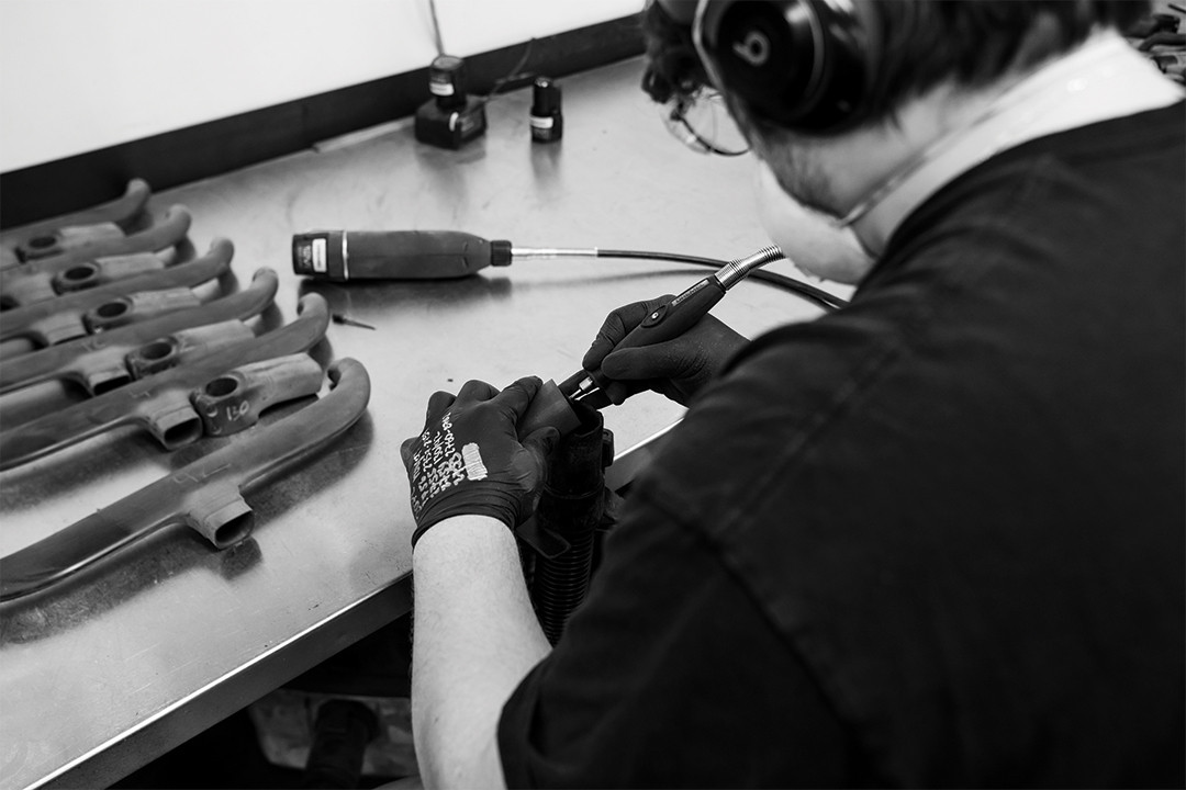 ステムとハンドルの綺麗な繋ぎ目はアメリカでハンドメイド。