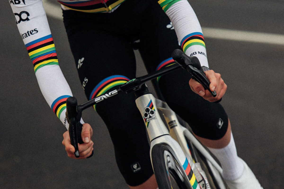 ポガチャルを始めUAEチームは世界最強チーム。2023年シーズン初めにほぼ全てのブランドのホイールをテストし、一番性能がよい評価を得たのがENVE。