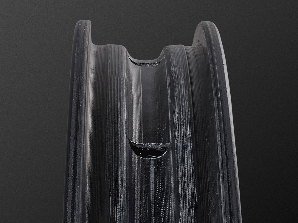 フックレスリムの精密で一貫したビードシート径は、ETRTOによって定義された要件を満たすべく、切削加工で製造されています。初めてタイヤを装着した後に空気を入れると、タイヤがリムのビードロックにはまり込む際に弾けるような音がします。このとき、リムのビードシートに柔軟な密閉面が作られ、タイヤ内の空気圧が保持されるのです。
