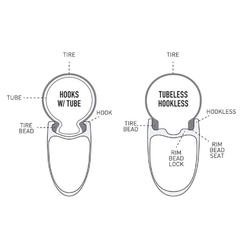 フックドビードは、チューブレスリムのためにデザインされたものではありません。これは、タイヤを確実に保持できるようにする、チューブドのリムとタイヤのためのシステムです。軽量なフォールディングタイヤは高弾性のビードを備えていることが多く、正しく保持できなければ伸びてリムから外れてしまう恐れがあります。