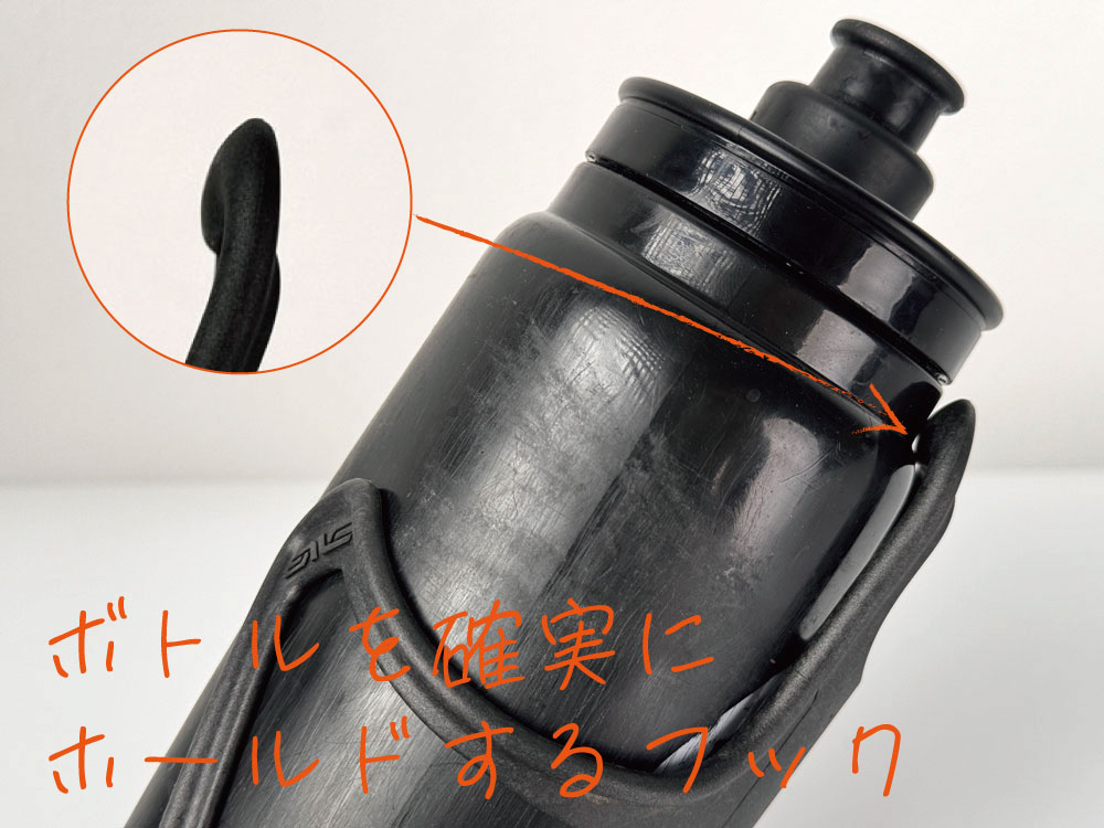 荒れた路面でもボトルを確実にホールドするフックつき!