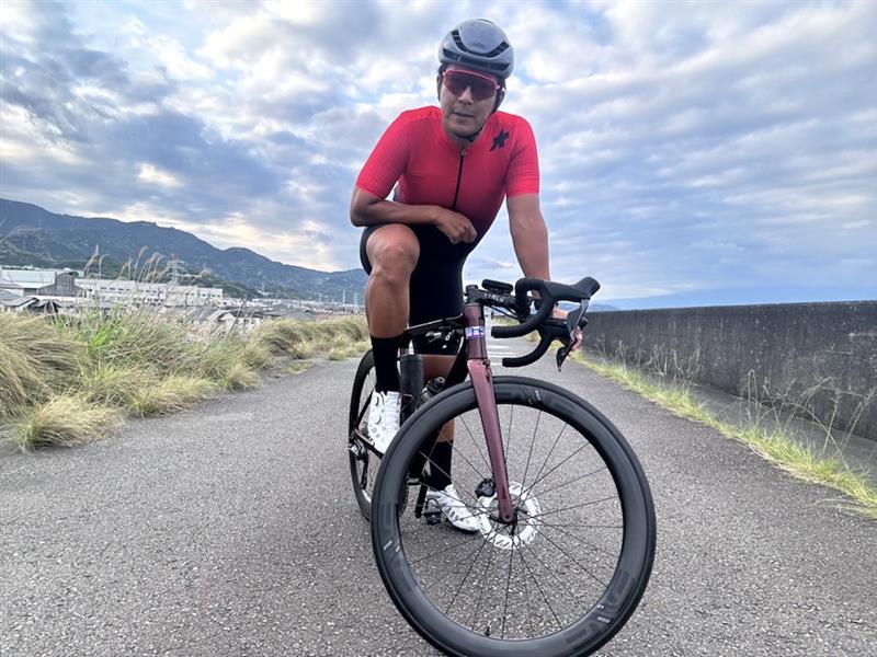 軽量でヒルクライムも楽に上れ、ワイドタイヤも使えるので低圧で振動を吸収。ハイトが低く横風も問題なし。
