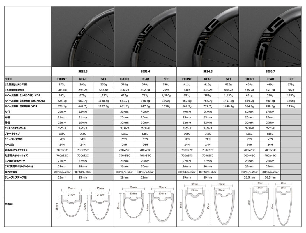 ENVEのロードホイール SESシリーズはリムハイトにより分かれた