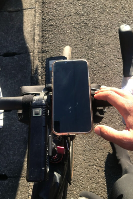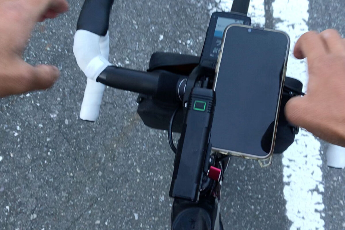 ライド中、メールや地図を確認して、すぐ移動したい時にもマウントの噛み込みを気にすることなく固定して移動でき、ロードバイクのスピードでも落下することはなく、登りで激しくバイクを振っても安定しています。