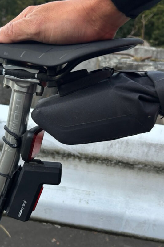 また、気室もロールアップ方式で防水性もしっかり確保されています。走行中にがたつきもなく、ダンシングの邪魔にもならなくておすすめです。