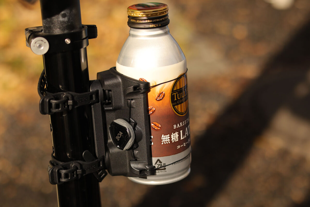 普通のペットボトルや缶がマウントできて便利。