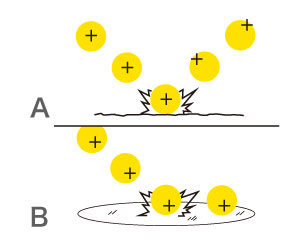 上のイラストは力を矢印で表した2つのシナリオです。地面をバウンドするボール(イラストC)には3本の矢印ありますが、よく磨かれて濡れた氷にボールがバウンドした場合(イラストD)は、いくつかの力は前方に方向転換します。