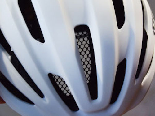 ベンチレーションホール前面には、バグメッシュという虫や飛び石などから頭部を守るメッシュを装備。
